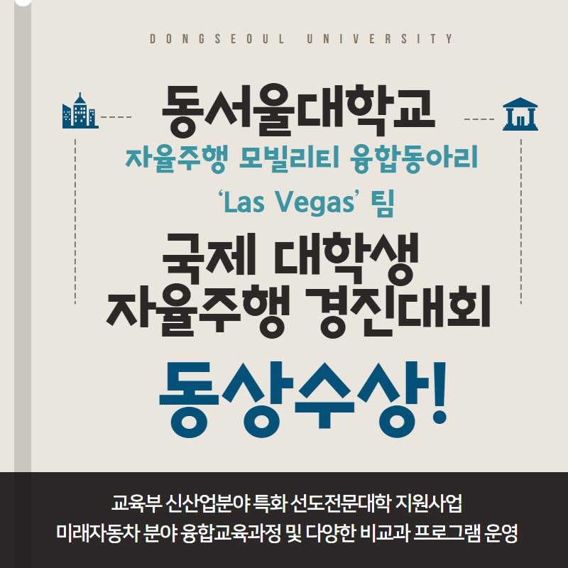 동서울대학교(총장 유광섭)는 자율주행 모빌리티 융합전공 학생들이 국제 대학생 자율주행 경진대회에서 동상을 수상했다고 전했다.